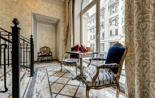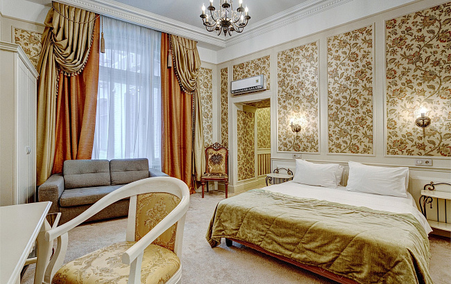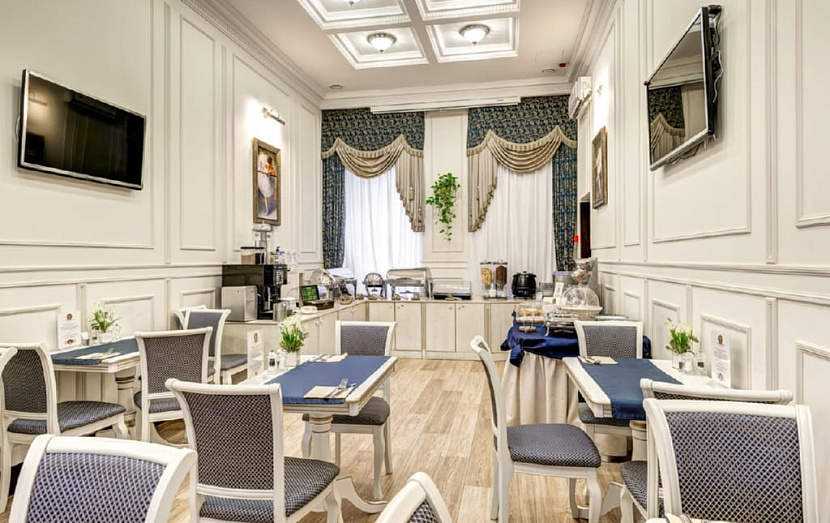 Отель разместился на знаменитой пешеходной улице Кузнецкий мост, в трехэтажном историческом особняке, выстроенном в XVIII столетии. Гостей ожидают двухместные номера категорий Стандарт, Комфорт, Люкс, выполненные в изысканном классическом стиле начала ХХ века с уникальными предметами антикварной мебели. В каждой комнате есть кондиционер, санузел с душем, фен, телевизор.