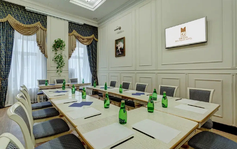 На всей территории доступно подключение к Wi-Fi. Для проведения встреч и переговоров в отеле предусмотрен небольшой конференц-зал, рассчитанный на 20 человек. В зале есть экран, проектор, удобная конгрессная мебель.